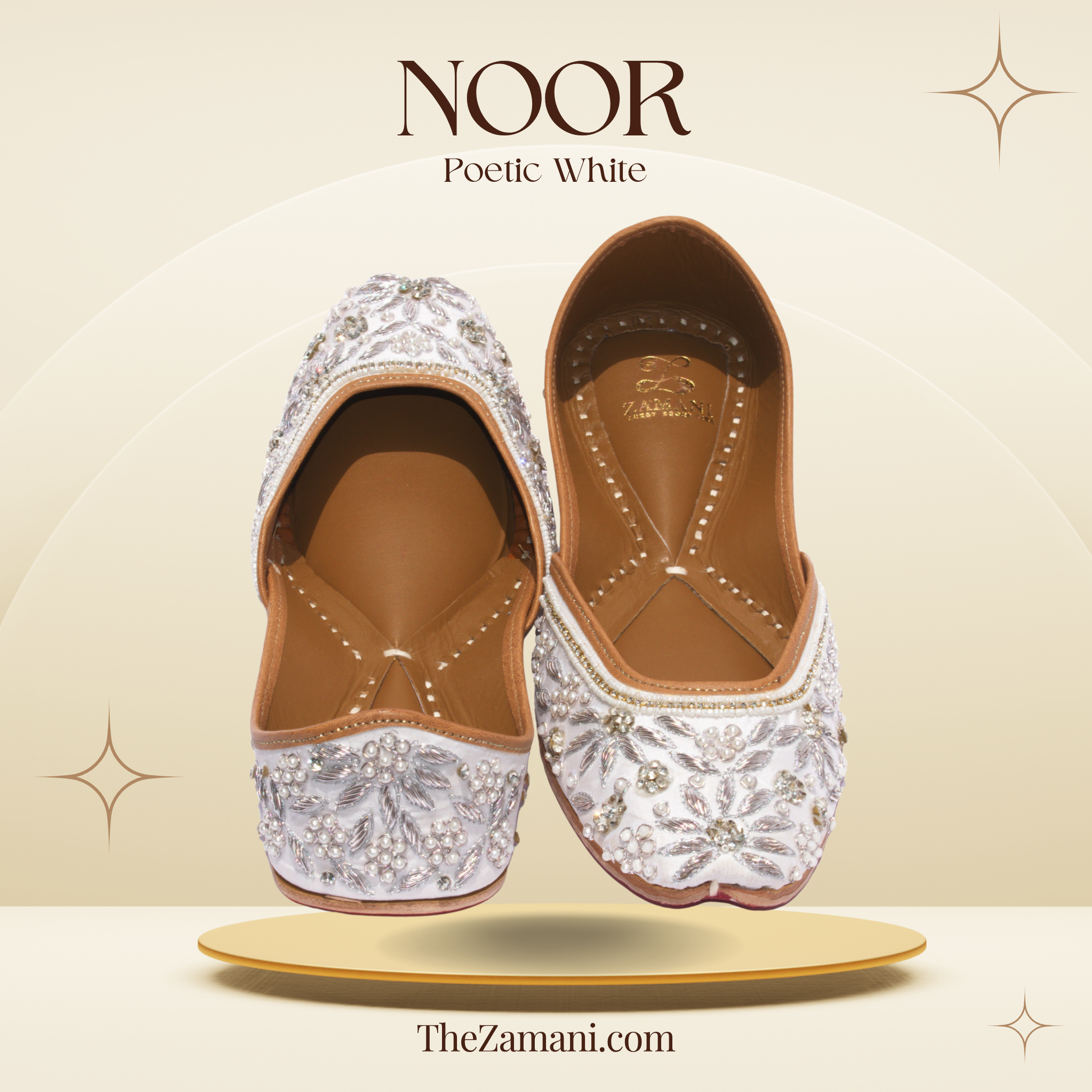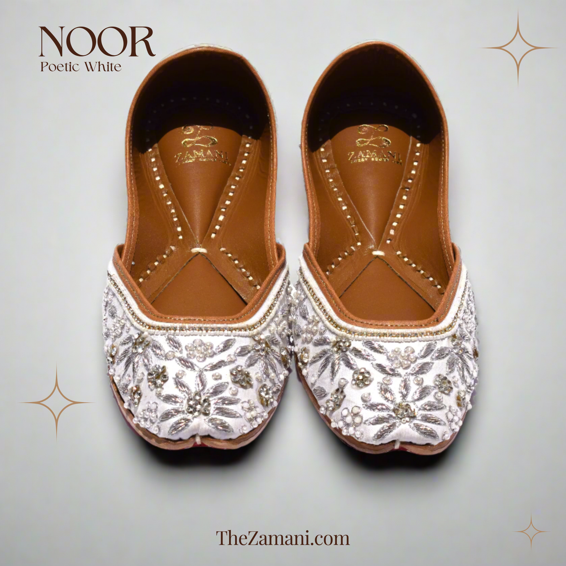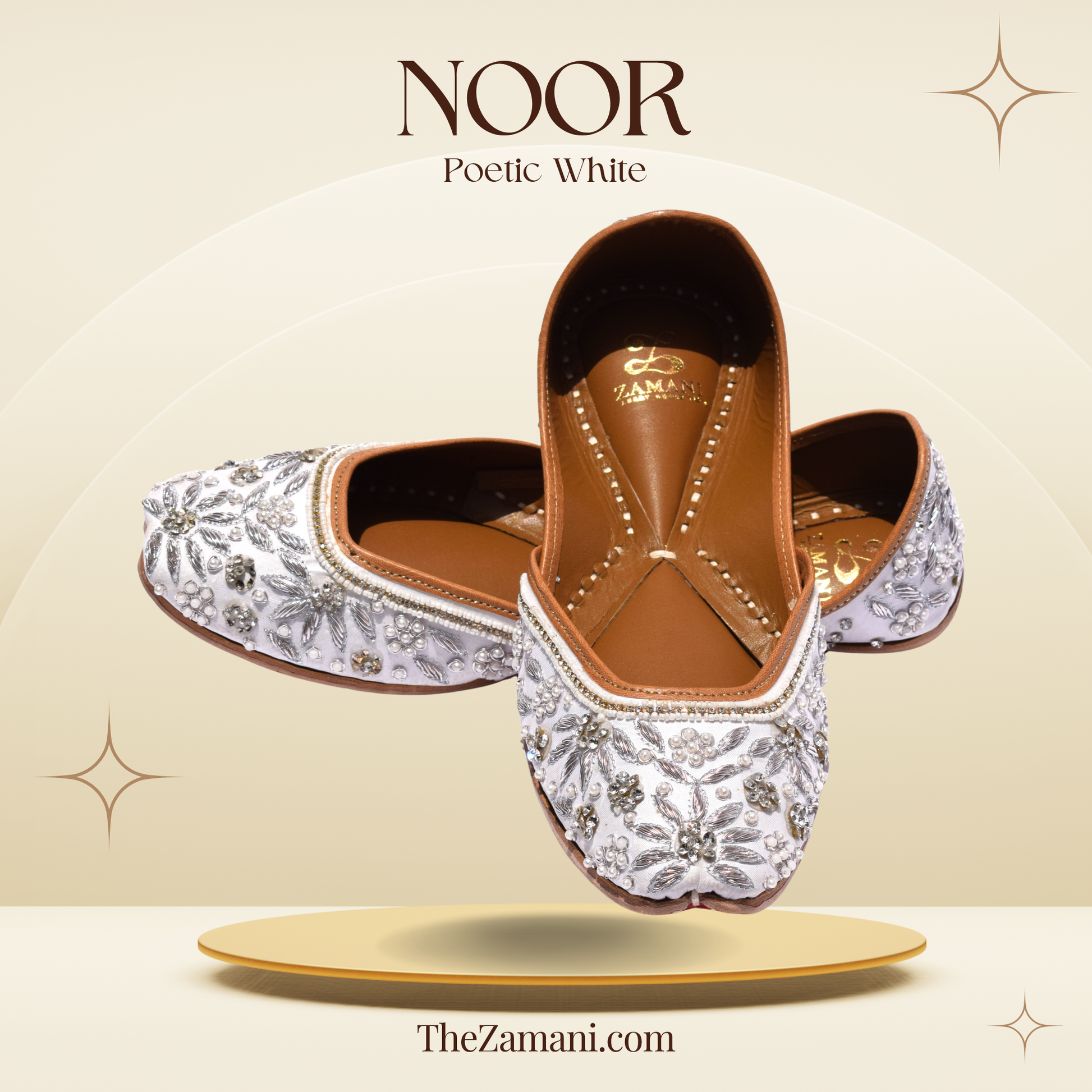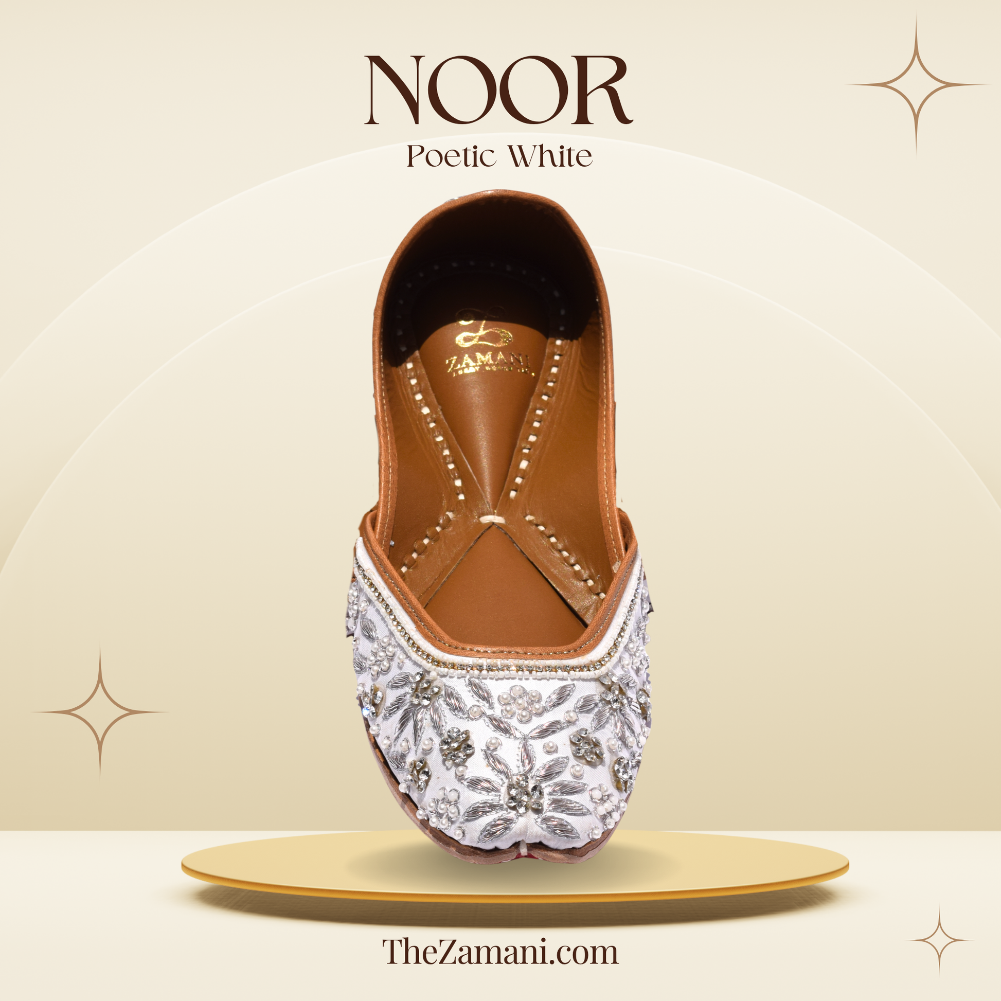 Noor is elegance in its purest form — a soft ivory premium soft leather jutti that glows with quiet beauty.