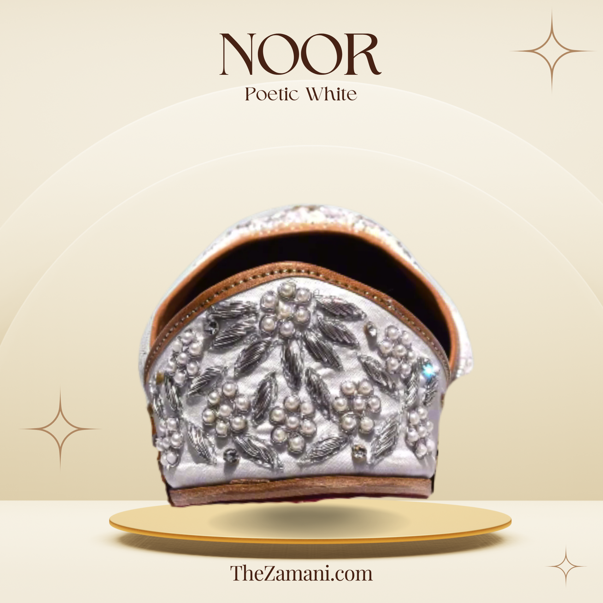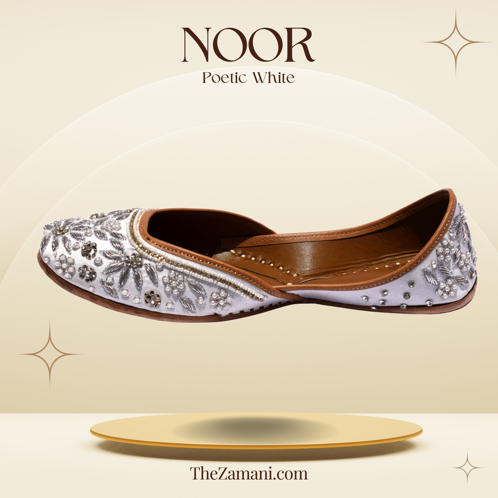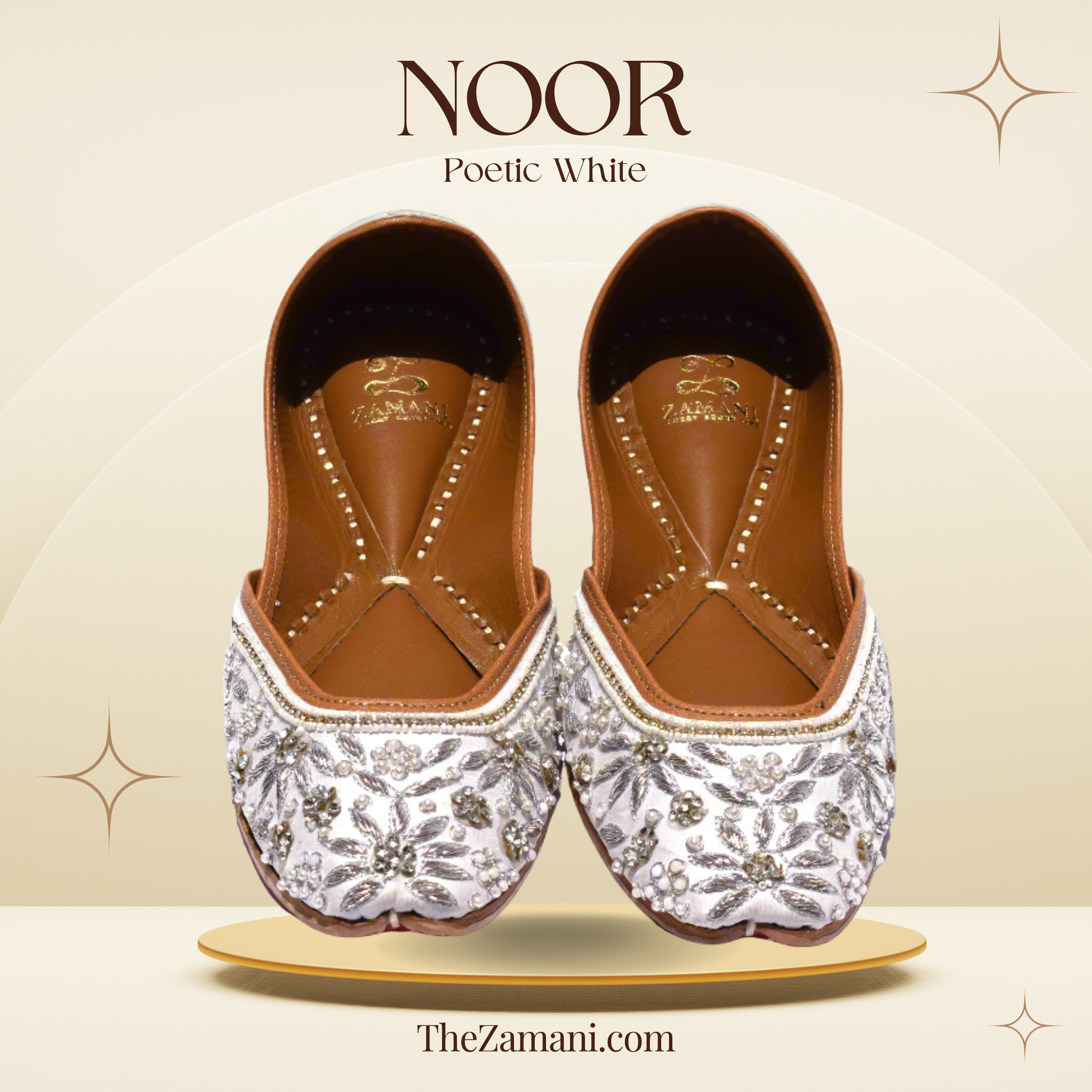 Noor is elegance in its purest form — a soft ivory premium soft leather jutti that glows with quiet beauty.