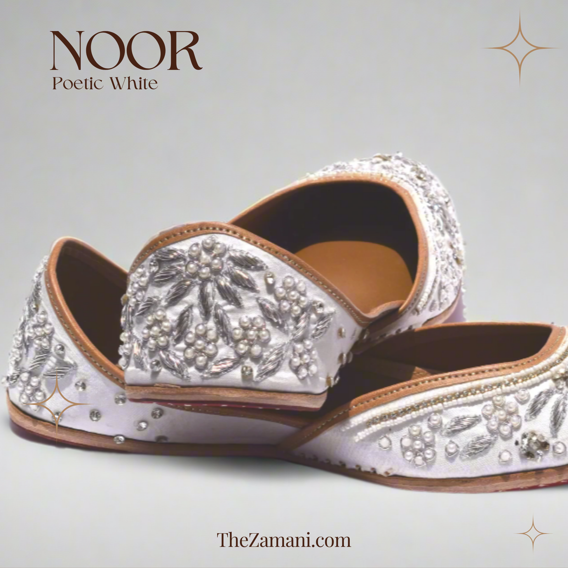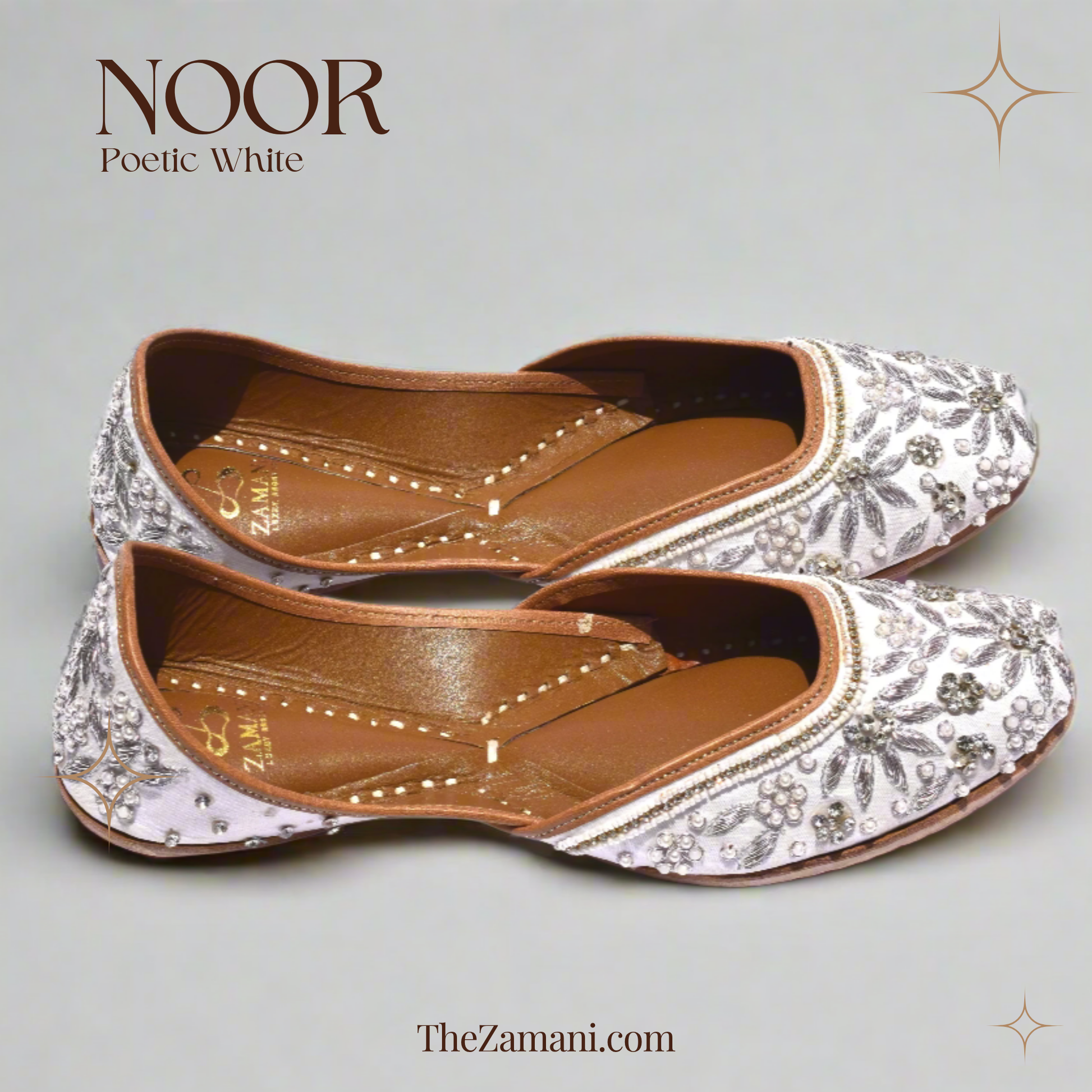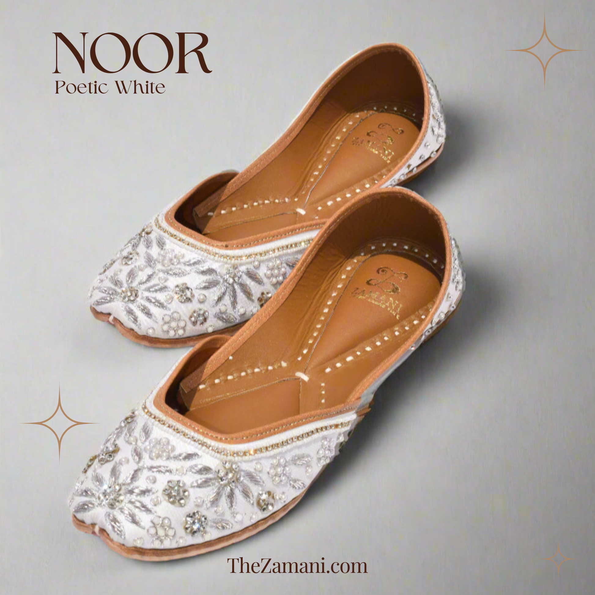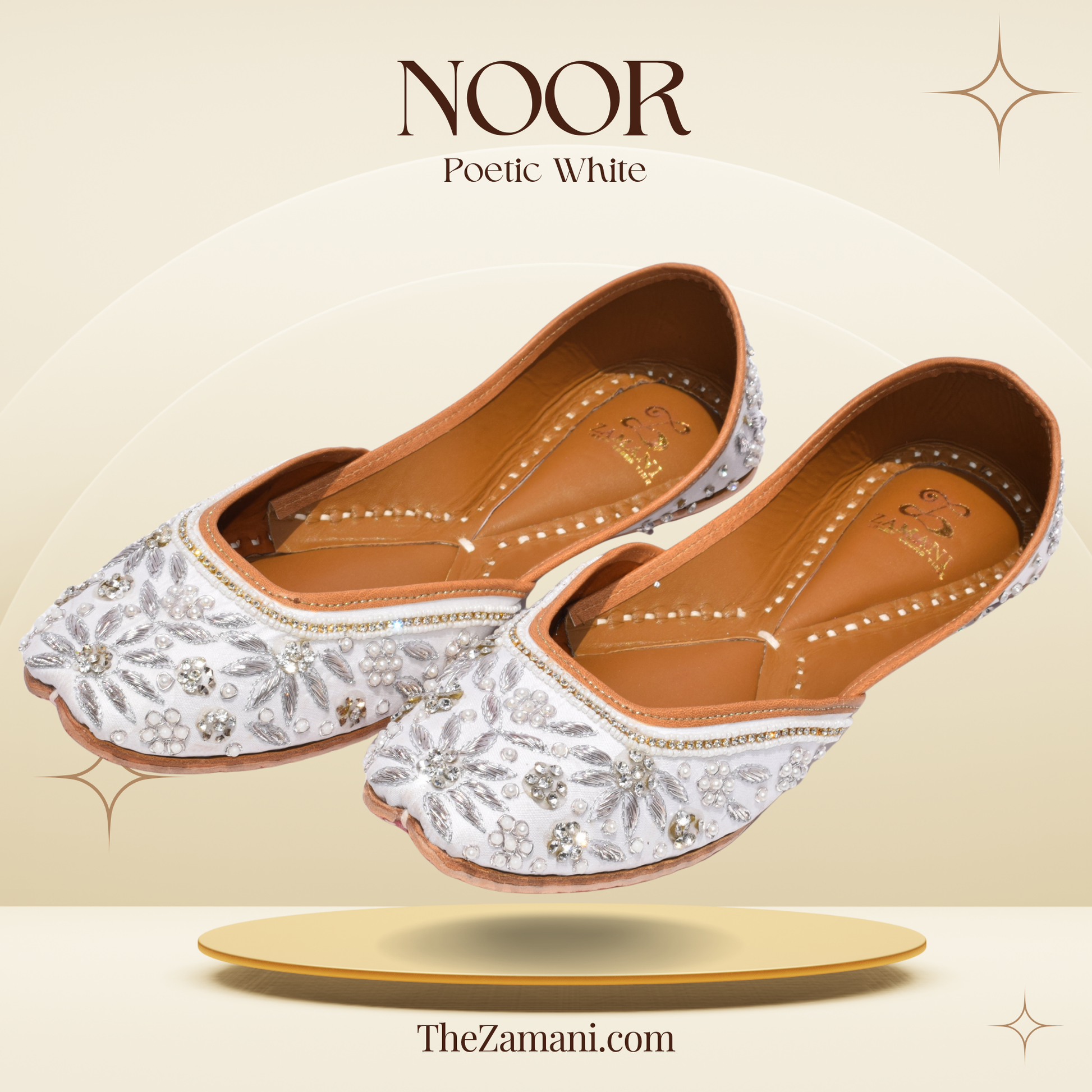 Noor is elegance in its purest form — a soft ivory premium soft leather jutti that glows with quiet beauty.